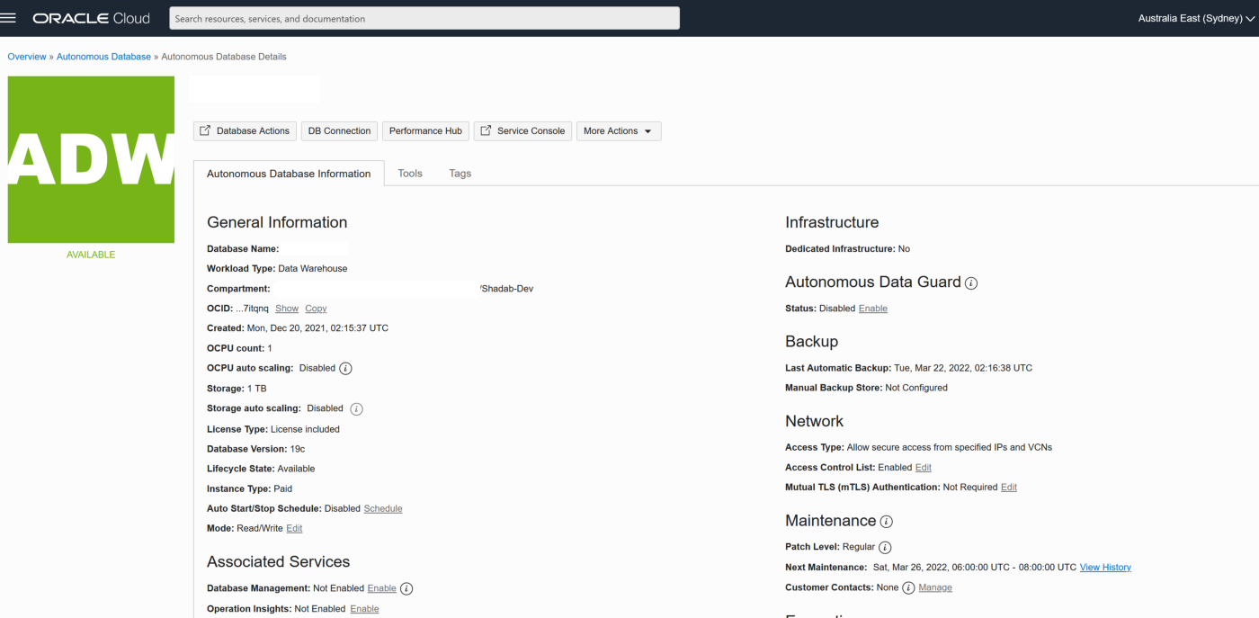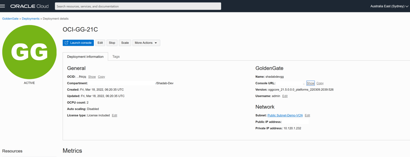 ssh opc@10.180.2.222
